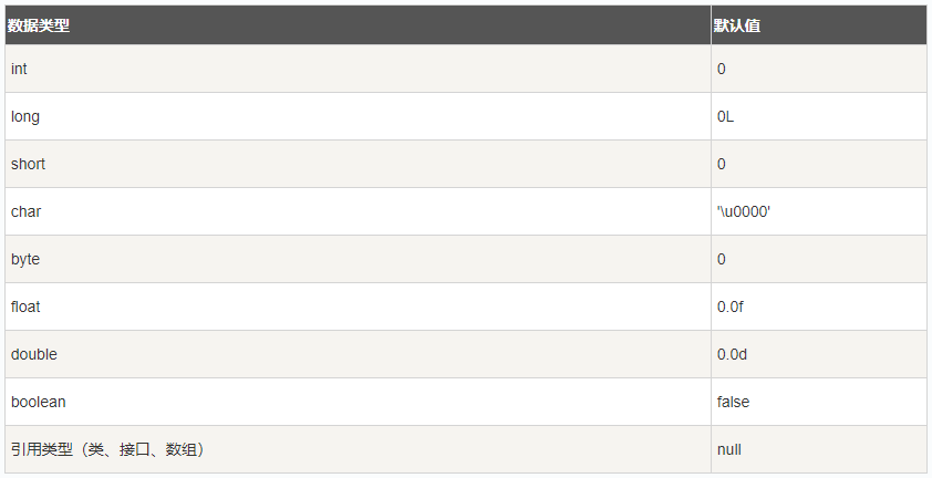 下表列出了 Java 各个类型的默认值: