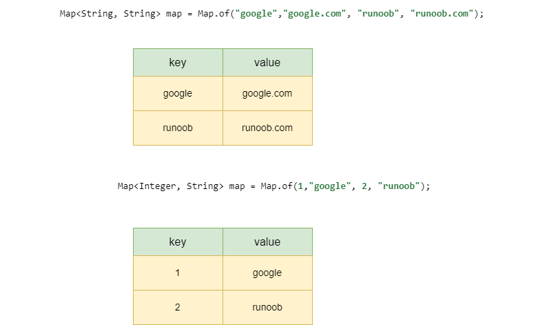 以下实例我们创建一个 HashMap 对象 Sites, 整型(Integer)的 key 和字符串(String)类型的 value: