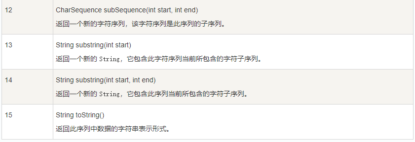 以下是 StringBuffer 类支持的主要方法: