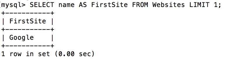 +----+--------------+---------------------------+-------+---------+ | id | name | url | alexa | country | +----+--------------+---------------------------+-------+---------+ | 1 | Google | https://www.google.cm/ | 1 | USA | | 2 | 淘宝 | https://www.taobao.com/ | 13 | CN | | 3 | 菜鸟教程 | http://www.runoob.com/ | 4689 | CN | | 4 | 微博 | http://weibo.com/ | 20 | CN | | 5 | Facebook | https://www.facebook.com/ | 3 | USA | | 6 | 百度 | https://www.baidu.com/ | 4 | CN | | 7 | stackoverflow | http://stackoverflow.com/ | 0 | IND | +----+---------------+---------------------------+-------+---------+
