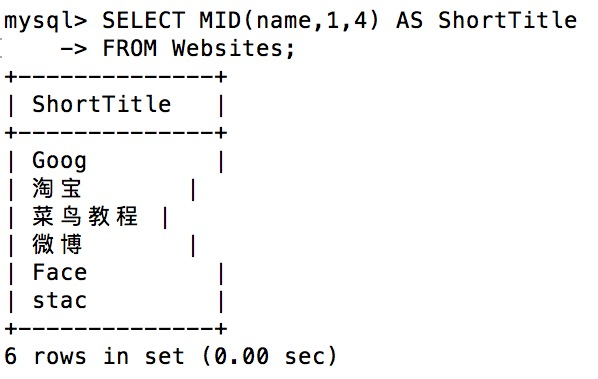 SQL MID() 实例