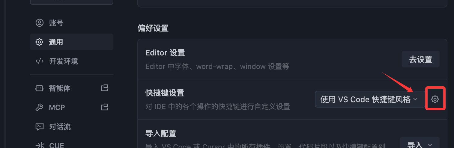 ┌───────────────────────────│菜单栏(文件/编辑/视图/帮助…)├──────┬────────────────────│││││侧边栏│代码编辑区│ AI 助手面板│││││(文件││(Chat/Builder││资源││对话界面)││管理器││││等)│││├──────┴─────────────│终端(底部面板)└────────────────────