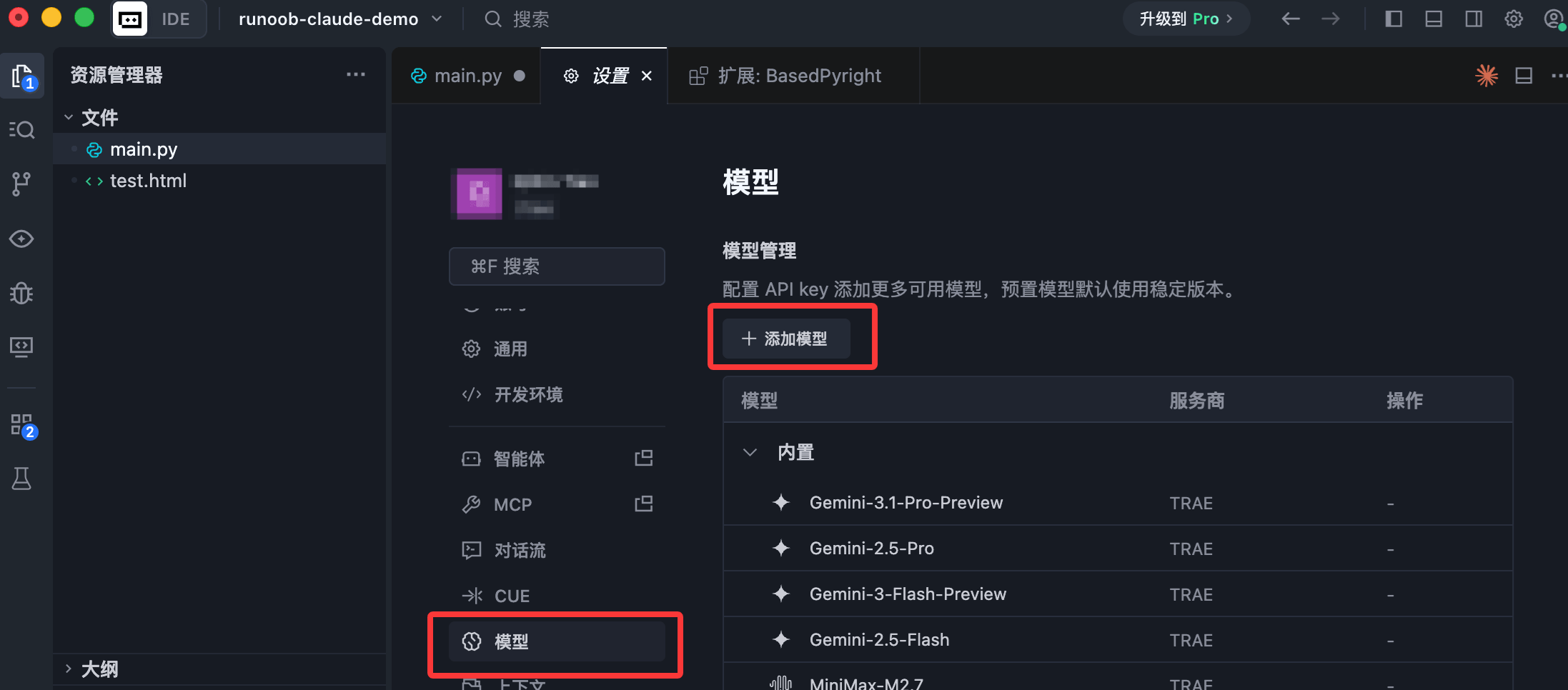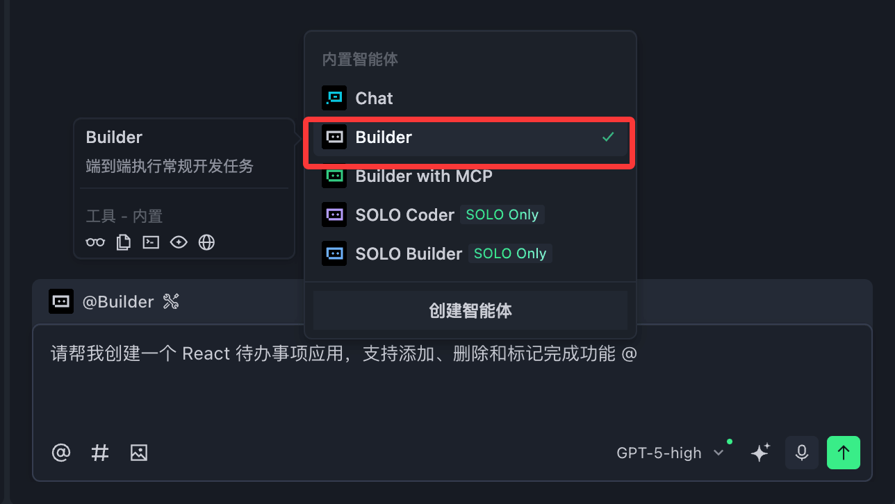 这是 Trae 最核心的功能,提供两种模式: