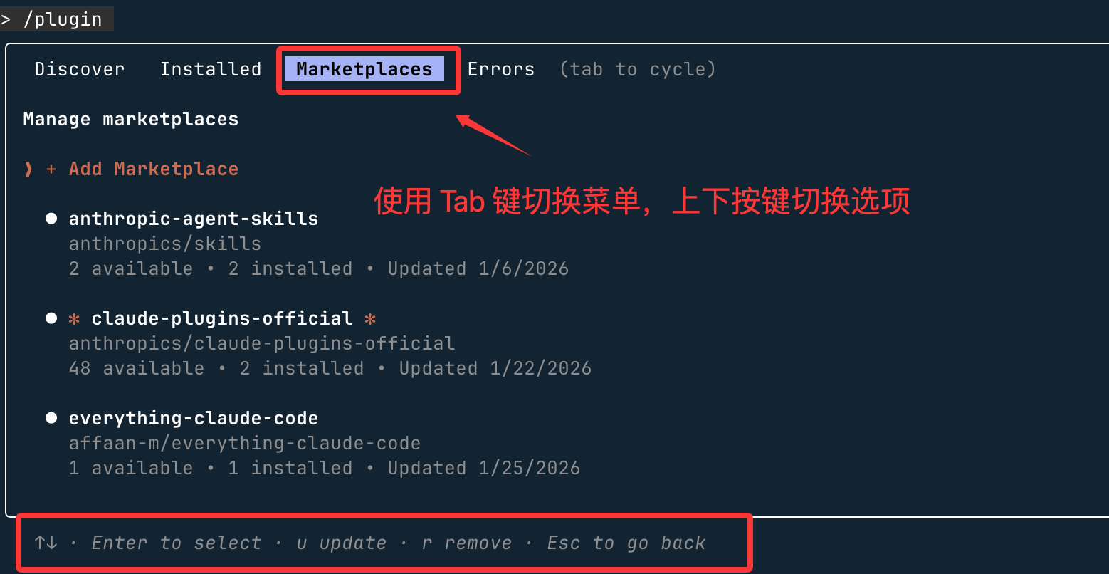 注意: 使用插件安装的 skills 目录在 ~/claude/plugins/marketplaces/ 下。