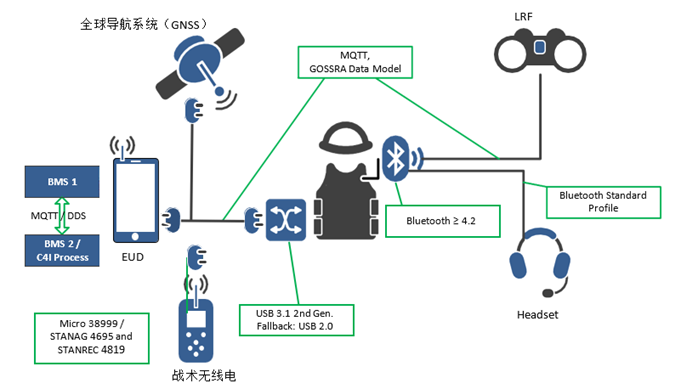 STANAG 4677 或 STANAG 5525 用于士兵系统间的战术数据交换,尤其是在多国环境中。