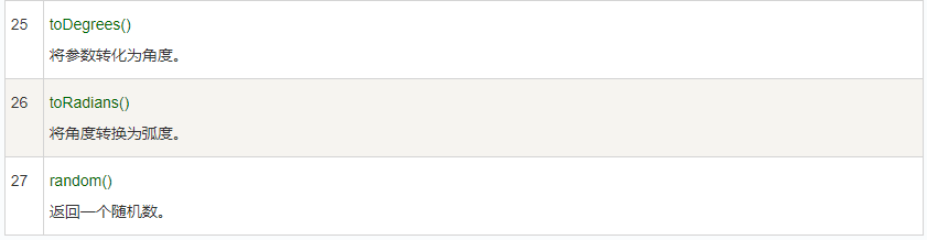 下面的表中列出的是 Number & Math 类常用的一些方法: