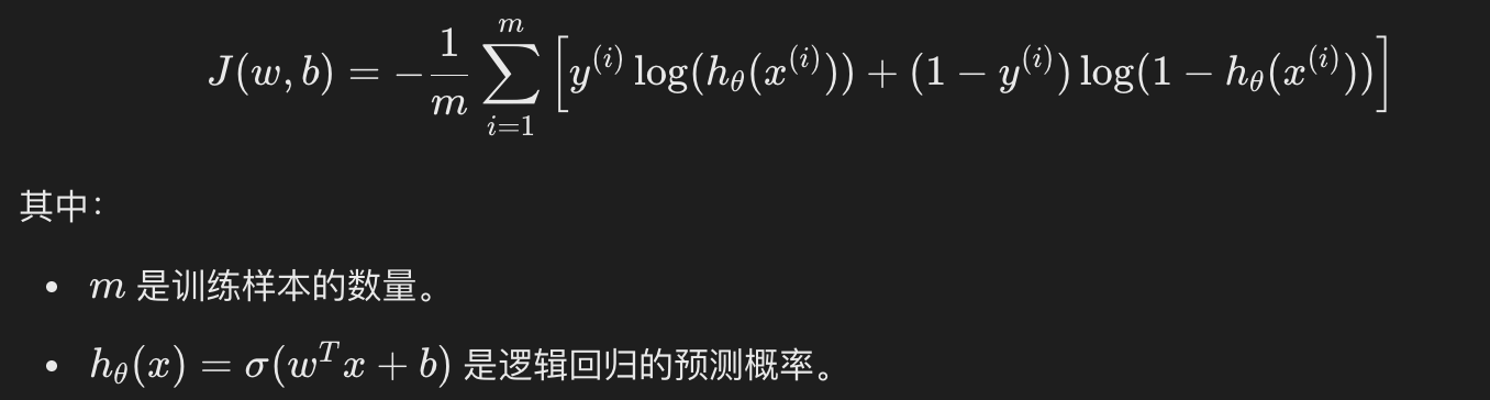 和线性回归一样,逻辑回归通常也使用梯度下降法来优化损失函数,求解参数 w 和 b。逻辑回归的梯度更新规则如下: