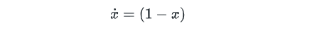 modelFirstOrderDocumented"A simple first order differential equation"Realx"State variable";equationder(x)=1-x"Drives value of x toward 1.0";endFirstOrderDocumented;