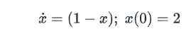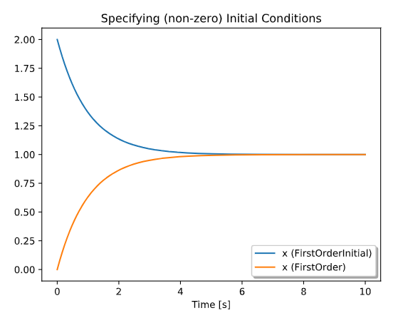 modelFirstOrderInitial"First order equation with initial value"Realx"State variable";initialequationx=2"Used before simulation to compute initial values";equationder(x)=1-x"Drives value of x toward 1.0";endFirstOrderInitial;