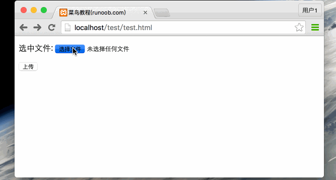 HTML设置上传文件的表单需要设置 enctype 属性为 multipart/form-data,代码如下所示:
