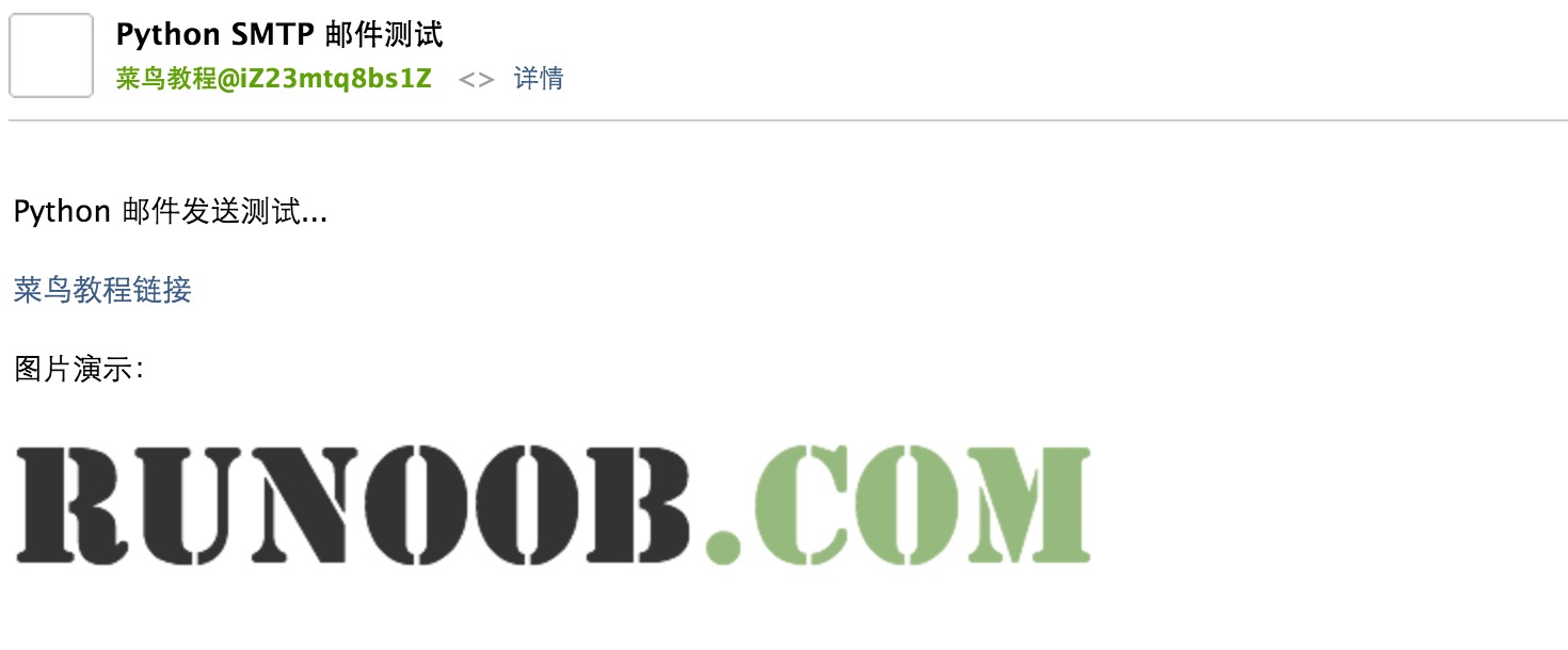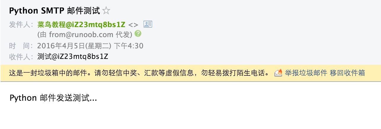 我们使用三个引号来设置邮件信息,标准邮件需要三个头部信息: From, To, 和 Subject ,每个信息直接使用空行分割。