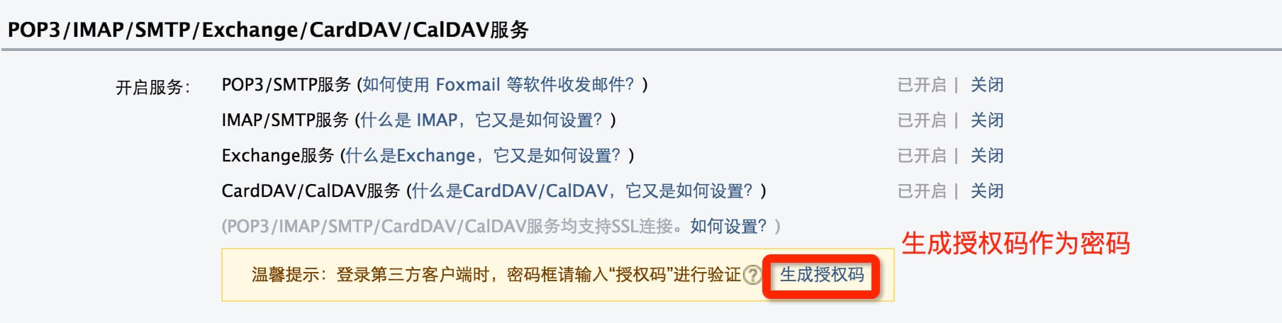 这里使用了 QQ 邮箱(你也可以使用 163,Gmail等)的 SMTP 服务,需要做以下配置: