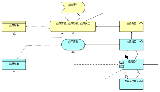 应用互操作视角从信息流或对各种服务的实现和使用角度对不同应用组件之间的关系进行描述。此视角通常被用来创建组织中各个应用的总体情况,也可以被用来表述用于支持业务流程执行的各项服务之间的交互关系。